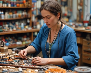 Maria is a highly skilled and innovative artist specializing in seed bead weaving. She creates unique and intricate jewelry pieces using a variety of materials, including glass seed beads, lampwork beads, pearls, ceramics, and natural stone beads. Inspired equally by the quiet patterns of the natural world and the echoes of human history she designs beatiful wearable pieces of art.